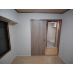 収納の建具に合わせて、襖を引き戸に入替えて、アクセントクロスでモダンな洋室に仕上がりました。