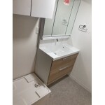 床も人気のグレーへ変更。横にあった収納と洗面台を一体にして、使い易い洗面へ変身しました。