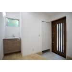 玄関ホールにTOTOのドレーナを設置。 まるで造作のような洗面化粧台なので、玄関に設置されていても違和感なく、とてもオシャレな雰囲気に。