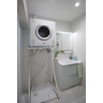 洗面室に幹太くんを設置。天候に左右されず洗濯物を乾燥できるのはとっても便利です!