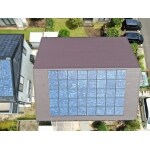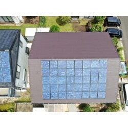 スレート屋根に太陽光パネルと換気棟