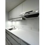 キャビネットがスライド式になり、容量も増えましたことで収納力が向上いたしました。 吊戸棚の下も収納となっております。 コンセントの増設もおこないました。
