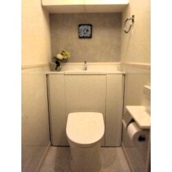 トイレ用品を床に置いて使っているので、できればすっきりと収納したい。また、キレイな衛生環境を保ちたいので壁にパネル等を貼って欲しい。