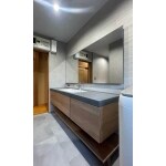 アイカのスタイリッシュカウンターを設置いたしました。アクリル系人工大理石ボウル付きのカウンターは継ぎ目が目立たず汚れが溜まりにくいので、日々のお掃除が楽になります。直線的でスッキリしたデザインですが、スライド式の収納は大容量です。落ち着いたカラーでまとめた上質な洗面室になりました。