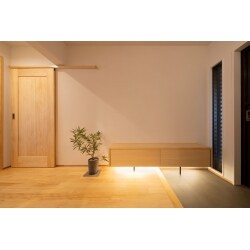 照明を取り入れ、イメージをガラッと変えました。雰囲気だけでなく、浮かす収納でお掃除しやすくしたり、靴を片付けている間、荷物をちょっと置けるようにしたり、機能性にも優れた玄関になりました。