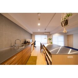 キッチンの配置を変え、LDKとしました。壁付キッチンと作業台を設け、たくさん収納できる仕様に。木とステンレスの色合いがステキな、シンプルで使い勝手のよいキッチンになりました。