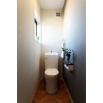 509.木目調のフロアとアクセントクロスがオシャレなトイレ。