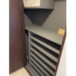 クローゼットなど無いお部屋でした。 壁を拡張して壁いっぱいの可動棚を設けました。