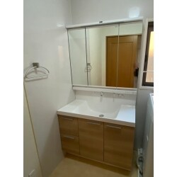 壁掛け水栓の洗面で掃除がしやすい仕様に!