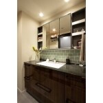 奥行き500mmのコンパクトな洗面化粧台ですっきりな空間