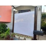 割れてしまった部分は新しいポリカエース製のパネルを設置。 柱は既存の物を利用することで費用を抑え、塗装を施して新品同様になりました。