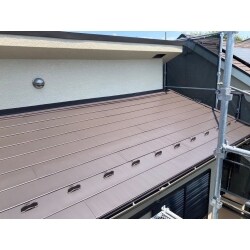 屋根材は耐久性、断熱性に優れたニチハ横暖ルーフを使用したカバー工法をご提案しました。