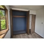 このリフォームは、築年数による劣化を改善し、快適で現代的な住まいを提供することを目指しました。LDKは壁を取り除き、広々とした空間を実現。新しいキッチンを導入し、使いやすくおしゃれな空間に仕上げました。 洋室には、アッシュカラーのフロアタイルとエアコンを新設し、落ち着いた寝室空間を提供。クローゼットにはブルーのアクセントクロスを採用し、デザイン性も向上しています。 すべての設備を一新。幅広い年齢層に好まれる住環境を提供しています。