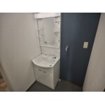 今回のリフォームでは、洗面台を交換し、機能性を向上させました。また、落ち着いたブルーのアクセントクロスとグレーのクッションフロアを取り入れることで、モダンで上品な雰囲気を演出しました。これにより、毎日の使い勝手が良く、デザイン性にも優れた洗面所空間が実現しました。