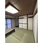 畳の交換、壁クロス張替、木部あく洗い、間仕切り・押入の襖張替、押入の改修をおこないました。畳のお色が鮮やかで、爽やかさのある心地よい和室になられました。