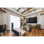 いくつか弊社OB様の事例をお見せし、気に入っていただいたイメージがありましたので、そのイメージを取り入れつつ、間取り作成しました。 特にLDKに見える見せ梁とLDKの雰囲気はイメージに近くなるようにしました。 また、趣味の部屋は、大きな音を出しても良いように、某王ドアを設置したり、壁の中に断熱やシートを入れたりと工夫しました。