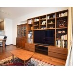 お持ちの食器棚を置いた残りのスペースをフルに活用し、セミオーダー家具を取り付け。 本だけではなく、趣味の装飾品もゆったり飾ることができるようになりました。 実はプリンターも隠して収納してあります。