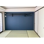 木部を建具に合わせたダークな色味に塗装し、「留紺(とまりこん)」のアクセントクロスを取り入れて落ち着いた雰囲気に仕上げました。
