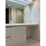 既存の一面鏡はそのまま活用し、カウンター下を交換。 カウンターサイズをピッタリ納められる商品を選定しました。