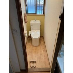 手洗い場をなくし、手洗いボウルの付いたTOTO「ピュアレストQR」に交換しました。費用と機能面のバランスの良い人気商品です。イエローのアクセントクロスがおしゃれで目を引きます。床はクッションフロアに張り替えました。