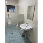 人感センサー付きの「非接触型」の小便器に交換しました。手を触れずに流すことができて衛生的です。壁のタイルはコンパネに替え、お掃除もしやすくなります。