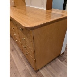中古の戸建て購入で、リフォームをしてから引っ越しとの事。 水回り他、優先順位の高いところに予算をかけ、食器棚は比較的綺麗だった事、カナダ製の木材を使用した食器棚だったことを考慮して、リペア作業を提案させて頂きました。