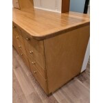 リペア前の食器棚 扉の表面が摺れて変色したりしています。