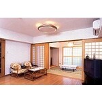 (旧株式会社ダイチでの事例です。)リビングダイニングと和室は統一感ができるようプランしました。 デザインが好評の仕切り扉は、上から吊り下げるタイプのもの。敷居に溝がないので、つまずく心配がなく、掃除も簡単にできます。 ご主人がお選びになった壁紙や照明がシックな雰囲気を演出しています。とくに4枚の仕切り扉は和風ながら、リビングのフローリングともマッチし開放感のある空間に仕上がりました。
