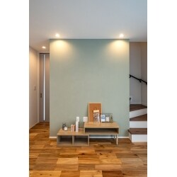 1Fはブラウン系、2Fはモノトーンで仕上げたリビング