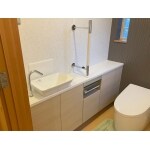 今回トイレの交換だけの依頼でしたが、お客様の希望されるリモコンが既設の手洗いキャビネットへは設置が難しく、キャビネット本体ごとの取り替えになりました。 また、すべて器具を取り外すにあたって一緒に内装クロスの貼り替えを提案しご依頼もいただきました。