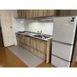 元々和室だったところをフローリングにしてリビングと統一感をだしました。 既設キッチンの床がLDよりも一段下がっていたので、きっちんを新しく変えるので同じぐらいの高さになるように床を組みなおしました。