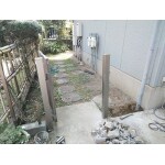 既存門扉は竹をあしらった物で経年劣化で、見栄えも少々気になっていたそうです。 ですので今回は門扉を一旦全て撤去して、土台も含めて改めて新しい部材にして設置作業を行いました。