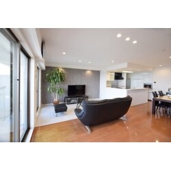 リビング横の洋室とリビングを繋げて広い空間を確保するだけではなく、キッチンの壁を一部撤去して海を眺められるスタイルをご提案。