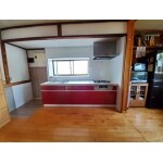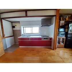 キッチンが古くなったので、新しくしたい。 キッチン左側の勝手口ドアを潰して、勝手口土間部分も 床を貼り伸ばして欲しい。勝手口ドア部分の壁、床に関しては安価に済ませたいので、色・材質は問わない。