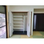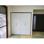 和室の畳交換、カーテンレール取付、和室建具(3ヶ所)交換、押入れをクローゼットに改修(本の収納と洋服が引っ掛けられるようにしたい)。 2Fトイレ交換、玄関ドア交換、玄関タイル貼り替え、網戸ネット貼り替え、窓クリーニング、ホスクリーン設置 玄関ホール床ワックスがけ。