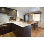 キッチンの間仕切壁を撤去し、開放的な空間に生まれ変わりました。 対面式キッチンをご希望でしたが、マンションの構造的に難しかったため、L型キッチンを採用して半対面式としました。