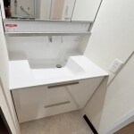 スッキリとエレガントなフォルムの洗面化粧台が設置出来ました。収納力が高く便利な機能が充実した洗面化粧台となっています。