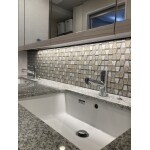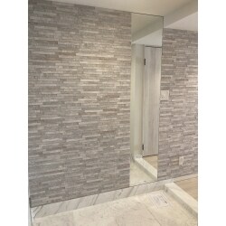 既存の洗面を使ってホテルライクな雰囲気を出すためにガラスモザイクタイルを採用しました。