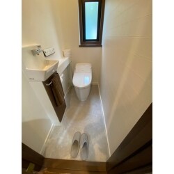 手洗い場もご希望でしたので、トイレとセットになっているモノを採用しました。白を基調としたシンプルで清潔感のあるトイレで、お掃除もしやすい空間になりました。