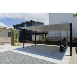お車はもちろん、バイクや将来お子様の自転車も紫外線から守れる、ゆったりとした駐車スペースを確保しました。さらに、休日には家族でBBQやプールを楽しめる広々としたテラススペースとしても活用できます。ご家族の皆様が憩いの時間を過ごせる、快適で多機能な空間をご提供しました