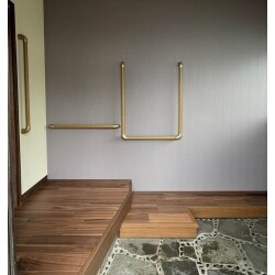 思い切って下駄箱を取り外し、移動範囲を極端にシンプルにし、立ち止まり、方向転換、移動、段差部分などで手すりの高さや形状を踏み台の形状やサイズなども細かく、何度も何度も繰り返し検討しご提案をしました。