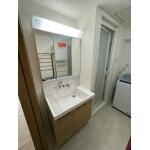 LIXIL「ピアラ」に交換しました。水栓が壁付けのタイプでお掃除しやすく、洗面ボウルを広く使えるのが特長です。床、壁、天井も張り替えたことでより清潔感あふれる洗面脱衣所になりました。