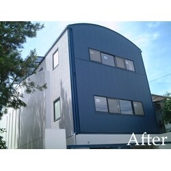 もともとの建物の外観的特長を最大限活かせるよう、シンプルでモダンなサイディングをご提案しました。軽量の金属サイディングを使うことにより、既設パネルをはがさず、上張り工法を選びました。 工期もコストも短縮でき、性能上もまったく問題ありません。 工事内容 アイジー工業 ガルバニウムサイディング ガルスパン15