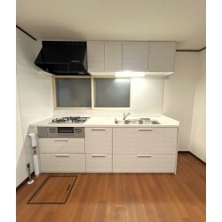 露出していた配管は全て壁と天井部に隠ぺいして納めました。スッキリとしたキッチンになりました。