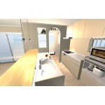 壁付けタイプのキッチンを対面化し、広々と使えるようにしたい。 収納力を上げたい。