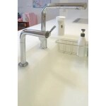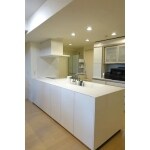 今回の工事では、お客様のご要望で システムキッチンを前方に約12センチ移動して背面の食器棚との間隔を広げました。