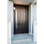 玄関のドアを交換しタイルを貼り替えました。落ち着いた色のドアで玄関周りの雰囲気がガラッと変わり、家全体にも重厚感が出ました。 電子錠付きの玄関ドアにしました。鍵を携帯しているだけで施錠も開錠もボタンをタッチするだけ。とても便利になったと大好評です。