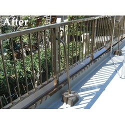 今後雨漏れが起きないよう、笠木の内部までしっかりと防水工事を行いました。 頑丈な手摺なので、布団を干しても大丈夫です。 小さいお子様がみえるので、手摺を揺らしたりしても大丈夫なようにしっかりと取付を行いました。 工事内容 手摺工事: オーダー品 (アルミ手摺・笠木等) 防水工事: ウレタン絶縁工法 その他工事: 木樹伐採 樋つまり抜き工事
