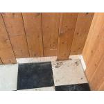 遠目でわかりずらいですが、大きな穴が空いてしまっっている床に接した部分の壁。小傷も複数個所ありました。