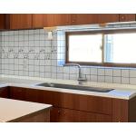棚の扉を全て取り替え、キッチンカウンター天板はタイルからメラミンに貼り替え、換気扇フードと水栓は新しいものへ取り替えました。補助金を活用して内窓を設置し、天井と壁のクロスも貼り替えてカントリー調からアメリカンヴィンテージ調にリフレッシュしたキッチン。